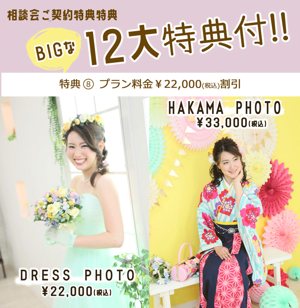 8.ドレス撮影・袴撮影に使える¥22,000割引プレゼント!